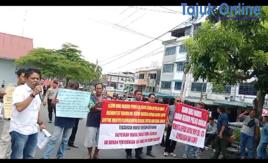 Kepri.Sejumlah ahli waris dari keluarga besar Joyah Batin Nurdin, yang memiliki lahan perkebunan di Pulau Ranoh, Kota Batam demo di Kantor Wilayah ATR/BPN Kepri, Batu 3 Kota Tanjungpinang, Selasa (17/9/2024) pagi.