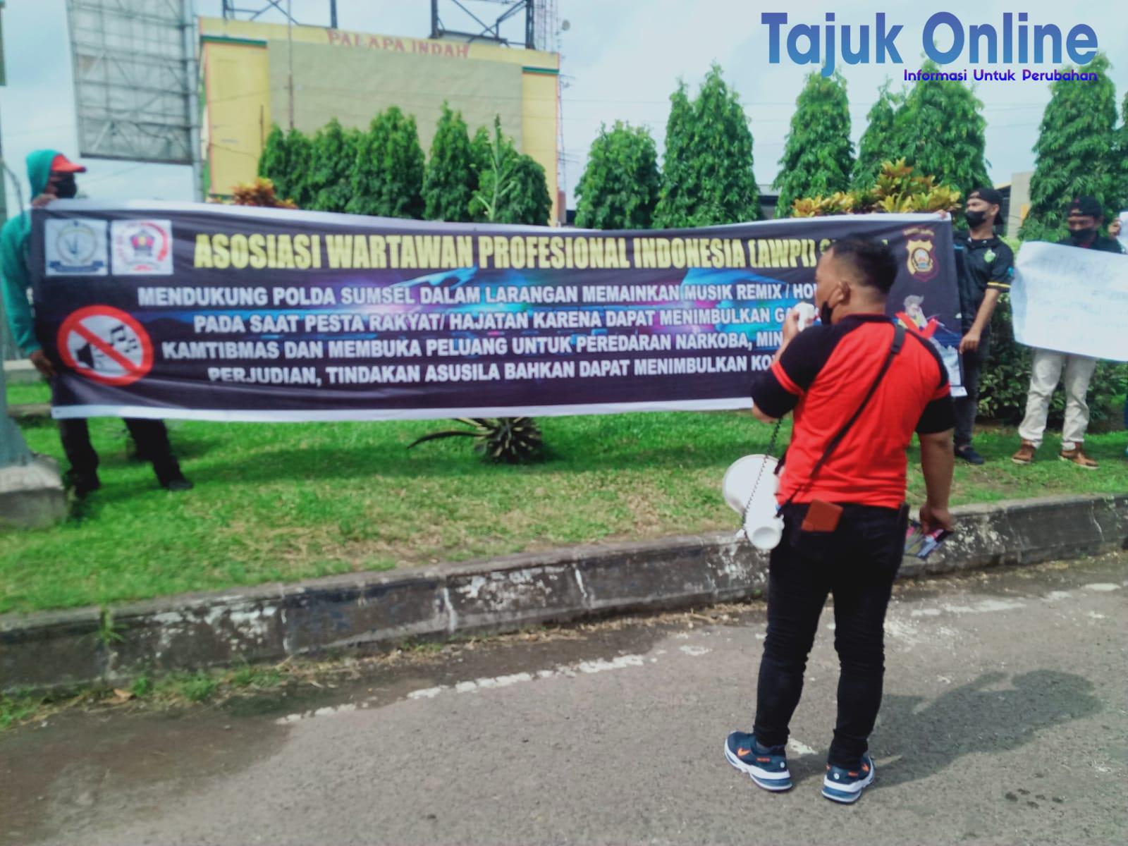 Dalam gelaran aksi nya Jhoni Antoni selaku Wakil Ketua Asosiasi Wartawan Profesional Indonesia(AWPI ) Sumsel mengatakan,aksi damai ini sebagai wujud dukungan Kepada Kapolda Sumsel Irjen Pol A Rachman Wibowo dalam upaya melarang masyarakat Sumatera Selatan pada umumnya dan masyarakat Palembang khususnya memutar musik Remik atau House musik saat pesta rakyat atau hajatan.