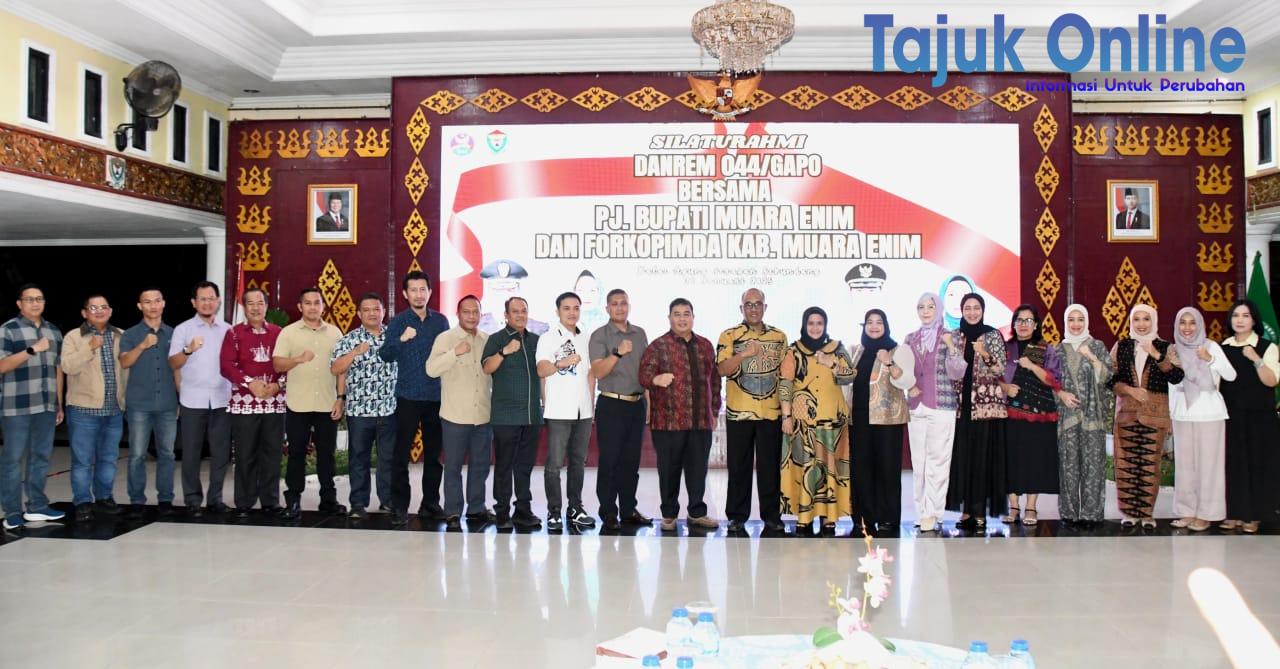 Muara Enim – Komandan Korem 044/Garuda Dempo Brigjen TNI Adri Koesdyanto beserta Ibu Ketua Persit KCK Koorcab Rem 044 PD II Sriwijaya dan staf, bersilaturahmi dengan Forkopimda Kabupaten Muara Enim, Rabu (22/1/2025).