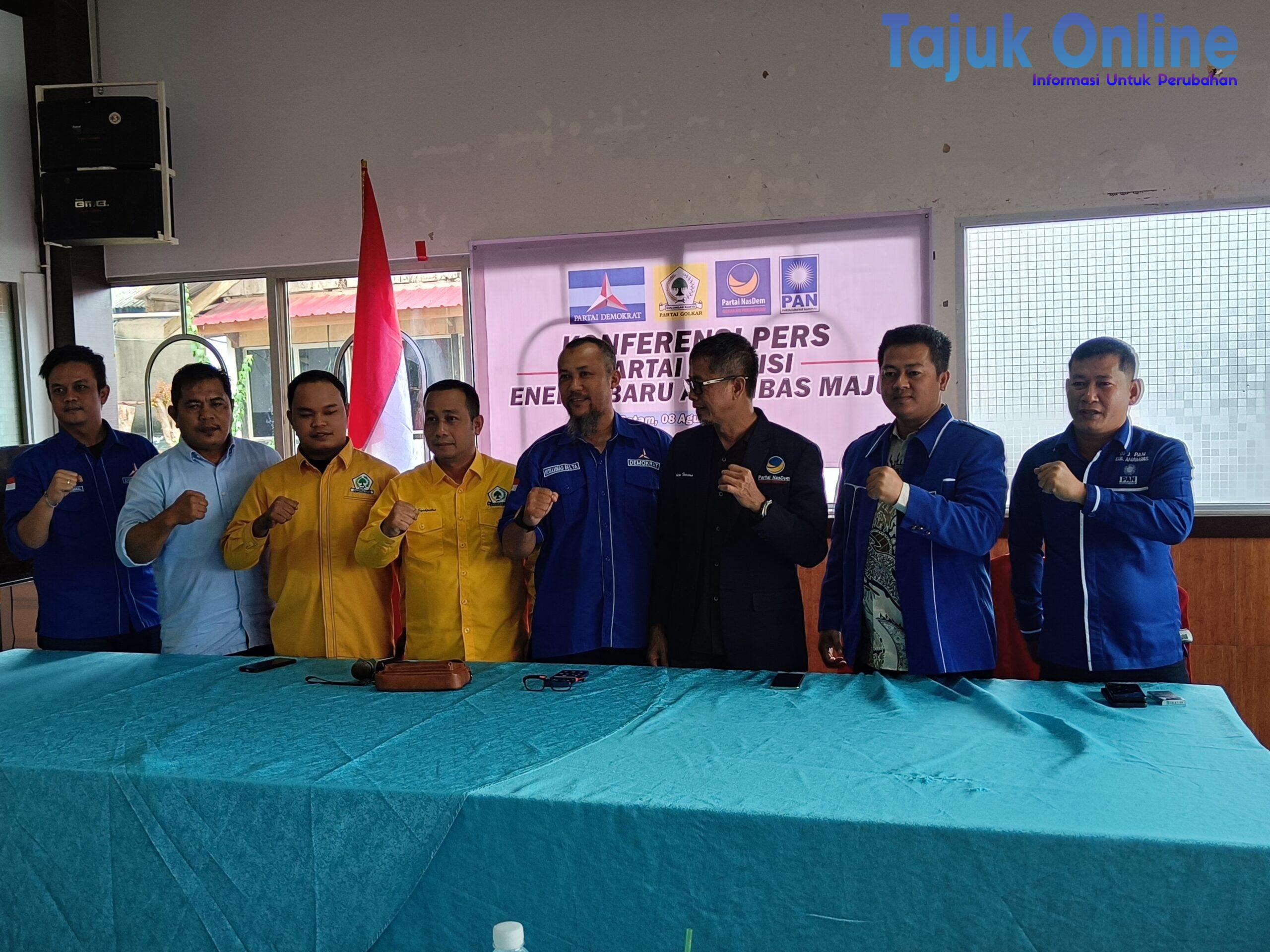 Koalisi pengusung pasangan calon Bupati dan Wakil Bupati Kepulauan Anambas, Aneng dan Raja Bayu Febri Gunadian, SE, resmi memperkenalkan tagline mereka, “Energi Baru Anambas Maju,” dalam konferensi pers yang digelar di Golden Prown, Bengkong, Batam, pada Kamis (15/8/2024).