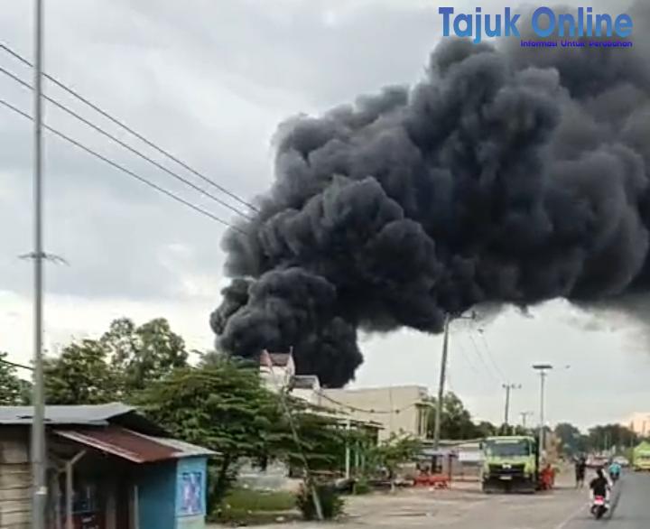 “Iyo kak, caknyo ado gudang disano jadi tengki didalamnya meledak, kami panik asap pekat hitam yang membumbung tinggi di udara”, kata sumber yang enggan disebut namanya.