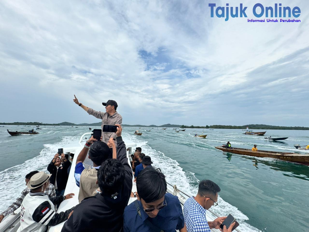 Batam. Ratusan boat pancung menyambut kedatangan Calon Wali Kota Batam nomor urut dua, Amsakar Achmad, saat melakukan perjalanan kampanye ke Pulau Terong, Kecamatan Belakangpadang, Rabu (16/10/2024) siang.