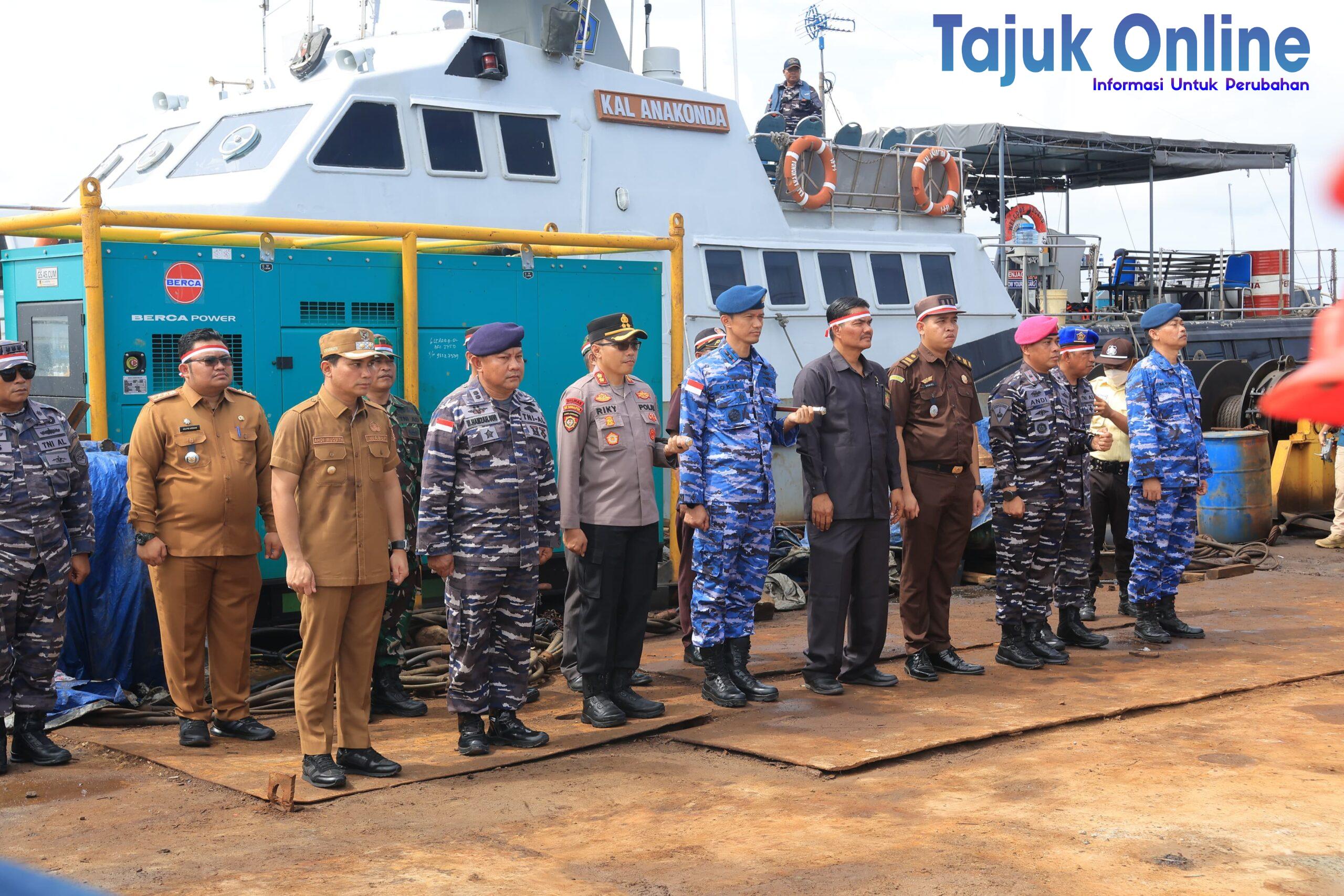 Bintan, Kepri – Memperingati Hari Kemerdekaan Republik Indonesia ke 79 tahun 2024, FKPD Kabupaten Bintan melaksanakan Upacara Pengibaran Bendera Merah Putih di perbatasan perairan yang berbatasan langsung dengan Negara tetangga yaitu peraitran Karang Singa yang terletak di Kecamatan Bintan Utara, Kamis (15/8/2024).