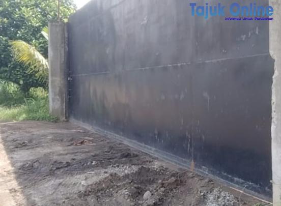 Nampak pintu gudang ini berwarna hitam dari bahan plat. Tepatnya di Desa Bakung, Kecamatan Indralaya Utara, Kabupaten Ogan Ilir, Sumatera Selatan