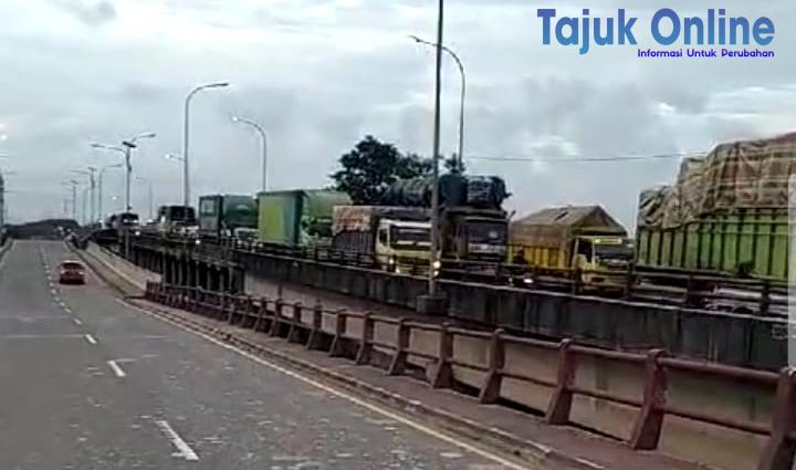 PALALEMBANG, Lagi-lagi masalah antrian mobil angkutan bertonase berat macet total di atas jembatan Keramasan mengarah ke Unit Pelaksana Penimbangan Kendaraan Bermotor (UPPKB) Kertapati, Palembang, Sumatera Selatan.