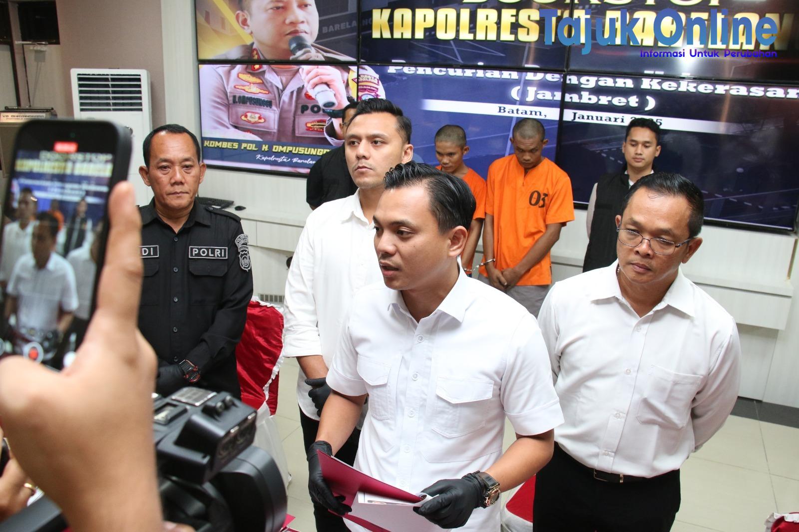 Polresta Barelang – Satuan Reserse Kriminal Polresta Barelang mengungkap kasus pencurian dengan kekerasan (jambret) yang terjadi pada Kamis, 9 Januari 2025, di Jalan Raya depan Kepri Mall, Sukajadi, Batam. Senin (13/01/2025).