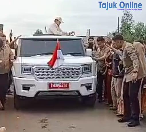 Setibanya di Helipad Balai Layanan Usaha Produksi Perikanan Budidaya (BLUPPB) Desa Pusakajaya Utara, Kabupaten Karawang, Presiden Prabowo langsung menuju lokasi Modeling Kawasan Tambak Budidaya Ikan Nila Salin. dengan menggunakan mobil maung garuda. Senin. (02/12/2024).