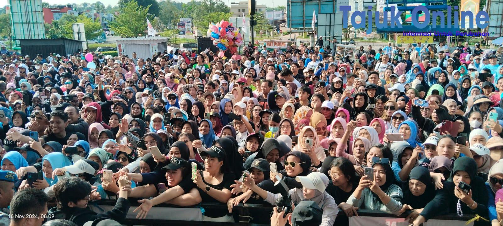 Batam. Ribuan warga kota Batam hadiri senam pagi bersama calon Walikota dan Wakil Walikota Batam nomor urut 2, yang dimeriahkan langsung, Raffi Ahmad, Atta Halilintar, Celine Evangelista, Rezky Aditya, Paula Verhoeven, dan Citra Kirana.