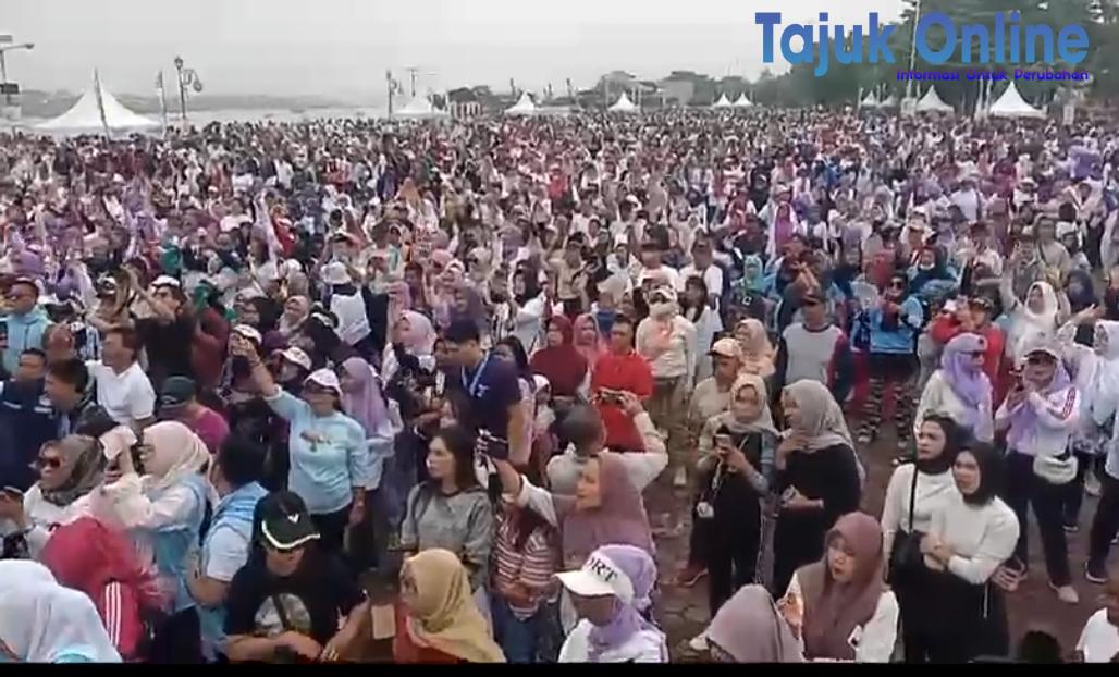 Palembang,Calon Gubernur dan wakil Gubernur Sumsel nomor urut 03, Mawardi Yahya bersama RA.Anita Noeringhati mengikuti senam sehat bareng warga Palembang,senam sehat kali ini diselenggarakan oleh Relawan ungu MATAHATI dan sekaligus pengukuhan tim relawan ungu di pelataran Benteng Kuto Besak (BKB) Sabtu (12/10/24).