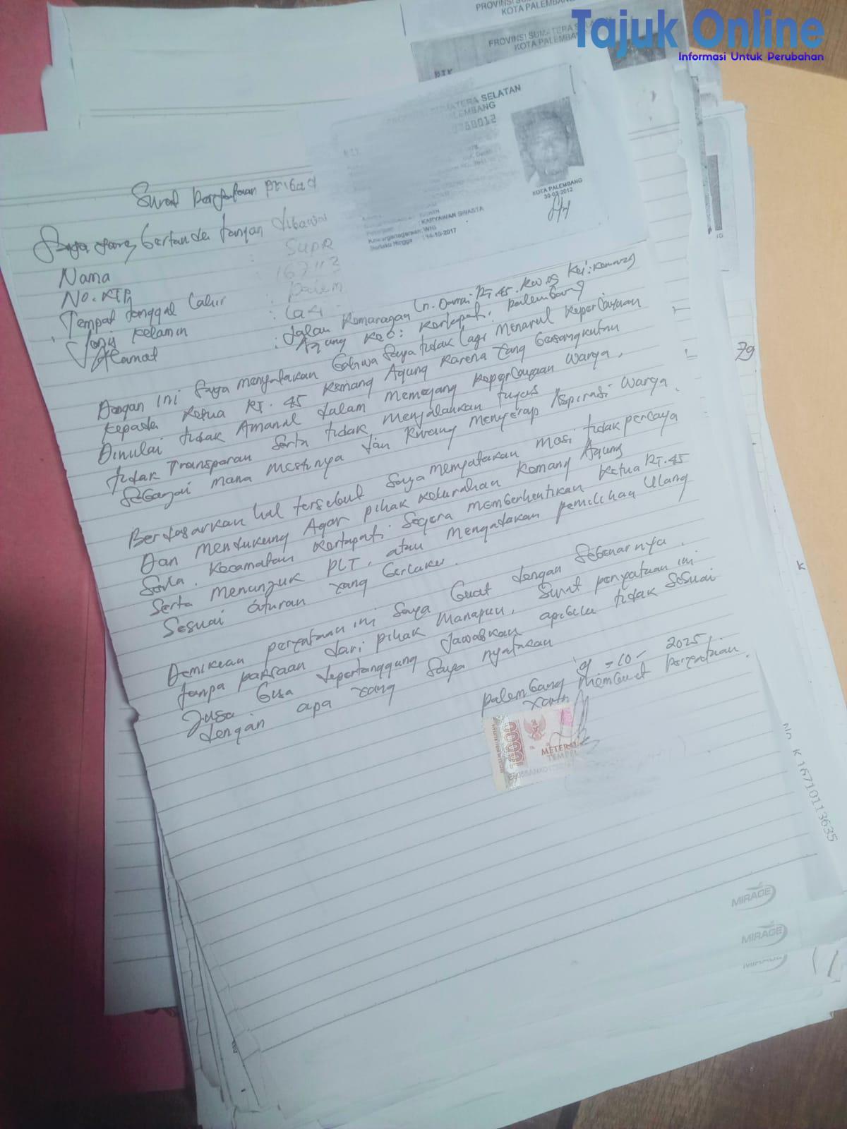 PALEMBANG. Warga RT.45 Kelurahan Kemang Agung, Kecamatan Kertapati, berencana kembali melayangkan surat mosi tidak percaya terhadap ketua RT setempat. Langkah ini diambil setelah surat serupa yang telah disampaikan sebelumnya dinilai kurang memenuhi syarat.